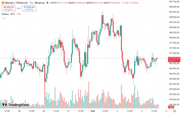 За той же період курс біткоїну скоригувався з $74 883 до $66 603. 30-денна ковзна середня знижувалася синхронно з ринком, підтверджуючи ослаблення його структури.