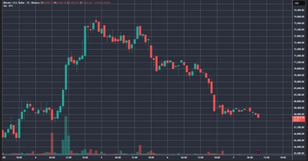 4 березня котирування біткоїну різко підскочили впритул до $72 000. У ході подальшого руху ціна вперше за місяць ненадовго перевищила $74 000.