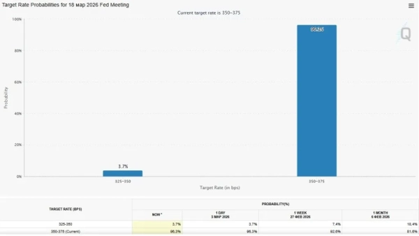 Потенційне зростання цін на пальне підігріло побоювання щодо інфляції та зниження ключової ставки ФРС . На момент написання менш ніж 4% учасників ринку вважають, що центробанк піде на цей крок у ході найближчого засідання 18 березня. Ще тиждень тому частка оптимістів була вдвічі вищою.