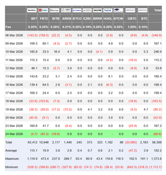 Відтоки зі спотових $BTC -ETF відновилися і становили $66,6 млн.