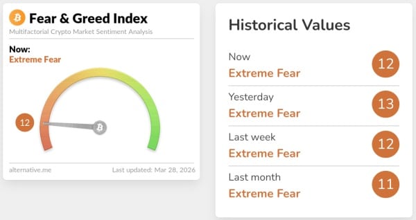 Індикатор настроїв ринку міцно закріпився в зоні «Екстремального страху», відбиваючи паніку, що наростає, серед роздрібних трейдерів. Історично такі значення часто супроводжують локальні капітуляції.