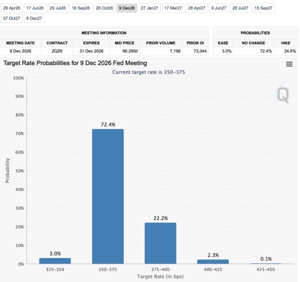Імовірність підвищення ключової ставки ФРС на початок грудня перевищує 22%. Джерело: CME FedWatch.