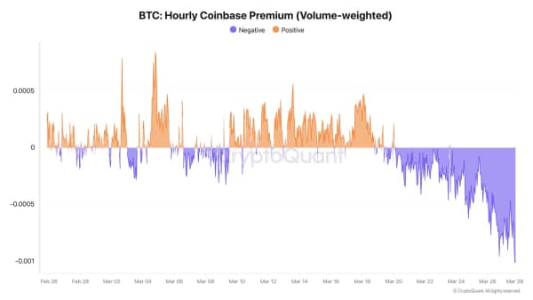 Премія Coinbase повернулася на негативну територію. Це важливий сигнал: він означає, що поточний тиск продавців йде не від офшорних деривативних майданчиків, а від американських спотових та інституційних інвесторів.