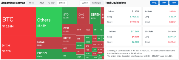 У разі вкрай вузького торгового діапазону та зниженої волатильності добовий обсяг ліквідацій незначний.
