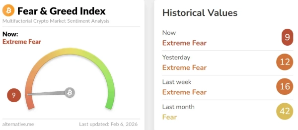 Популярний індикатор настроїв упав до 9 пунктів («надзвичайний страх»). Це найменші показники з моменту запуску метрики в середині 2023 року.