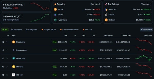 За «цифровим золотом» впали альткоїни: Ethereum у мить знижувався до $1756, Solana — до $70, BNB — до $574. Сукупна капіталізація ринку скоротилася на 6,1% — до $2,3 трлн.