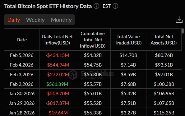 Спотові біткоїн-ETF фіксують відплив капіталу: 3 і 4 лютого фонди втратили понад $900 млн.