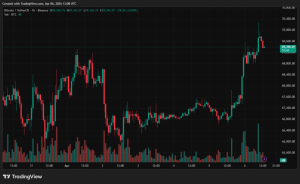 6 квітня вартість першої криптовалюти піднялася на 4%, наблизившись до позначки $70 000. Позитивна тенденція на ринку зумовлена ознаками можливого послаблення конфлікту в Ірані.