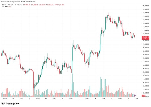 На момент публікації матеріалу перша криптовалюта торгується близько $70 500, за даними TradingView.