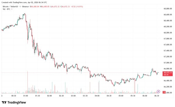 На тлі нової заяви Трампа біткоїн, який раніше відзначився невеликим зростанням, знову скоригувався. У моменті ціна падала до $66 217, згідно з TradingView.