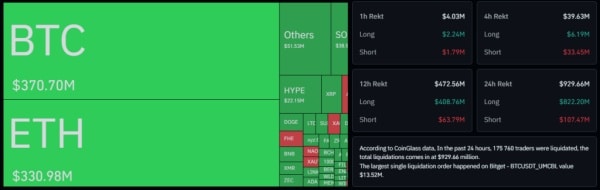 За добу обсяг примусово закритих угод збільшився до $929,66 млн. З цієї суми $822 млн припало на довгі позиції.