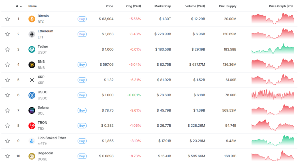 - На тлі цього курс біткоїну опустився нижче за $64 000.