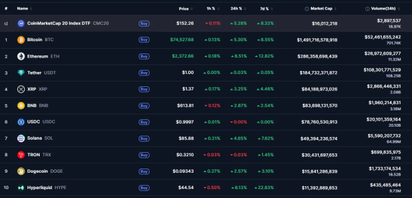 На момент написання біткоін торгується близько $74700.