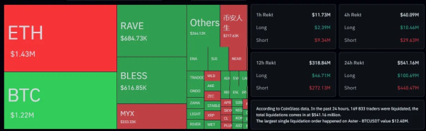 За даними Coinglass, за минулі 24 години примусово закрилися шорти на загальну суму $440 млн.