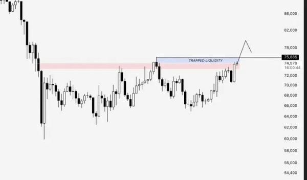 За спостереженнями аналітика під псевдонімом Ardi, у зоні близько $76 000 накопичився великий обсяг ліквідності, що знаходиться там із березня.