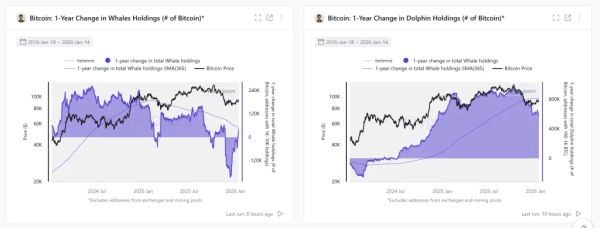 La situation a ensuite évolué : grâce à la popularité des ETF, les actifs du groupe « dauphins » ont connu une croissance fulgurante, atteignant 970 000 BTC en octobre 2025. Toutefois, ce pic a été suivi d’une vague de ventes. De par leurs volumes importants, ce groupe d’investisseurs a joué un rôle déterminant dans la formation des prix ces derniers temps.