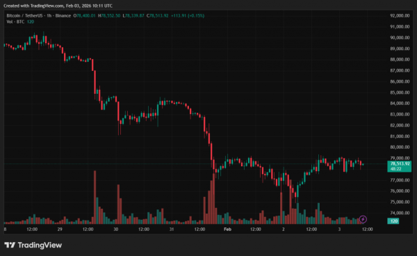На момент написання статті біткоїн торгується близько $78 500. За минулу добу вартість активу збільшилася на 3% після досягнення локального мінімуму поблизу $75 000.