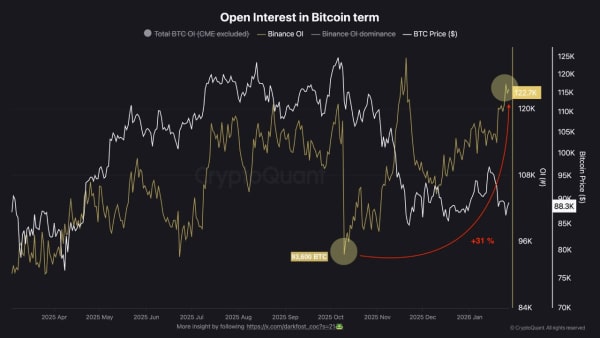 Ils ont également ajouté que, malgré le récent repli, l'intérêt ouvert sur Binance continue de croître. Il s'élève actuellement à plus de 123 000 $ BTC , dépassant les niveaux observés avant le 10 octobre (date à laquelle il était tombé à 93 600 $ BTC ). Cette hausse de plus de 31 % témoigne d'un regain d'appétit pour le risque chez les acteurs du marché, a souligné CryptoQuant.
