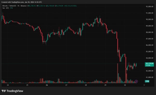 30 січня біткоїн в певний момент опускався до локального мінімуму поблизу $81 100, а Ethereum — до $2700. Сукупна капіталізація криптоактивів за добу зменшилася на 5,6% — до $2,9 трлн.