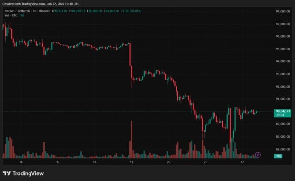 21 січня вартість біткоїна впала нижче $88 000 на тлі обвалу фондових ринків через напруженість у відносинах між США та ЄС.