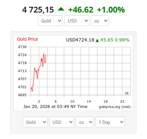 Підвищення цін на дорогоцінні метали викликане погіршенням глобальних настроїв після погроз президента США Дональда Трампа ввести нові мита проти європейських союзників у випадку відмови Данії продати Гренландію.