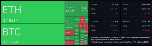 Добове падіння котирувань на 2% викликало ліквідації на $335 млн.