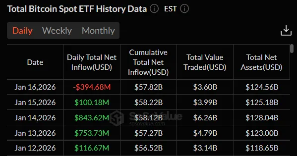 Американські спотові біткоїн-ETF перервали чотириденну серію притоків ($1,8 млрд), зафіксувавши 19 січня чистий відплив у розмірі $394,68 млн.
