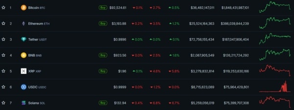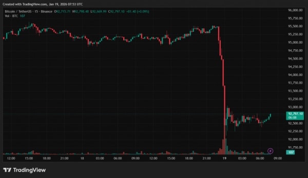 19 січня курс біткоїну зменшився з $95 467 до $92 263 (−3,3%). Слідом за ним у «червоний сектор» перемістилися головні альткоїни.