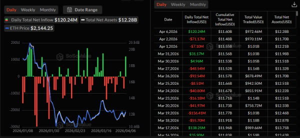 Спотові Ethereum-фонди також відреагували на покращення настроїв, додавши $120 млн. Раніше три місяці поспіль ці інструменти були в мінусі — загальний відтік становив $770 млн.