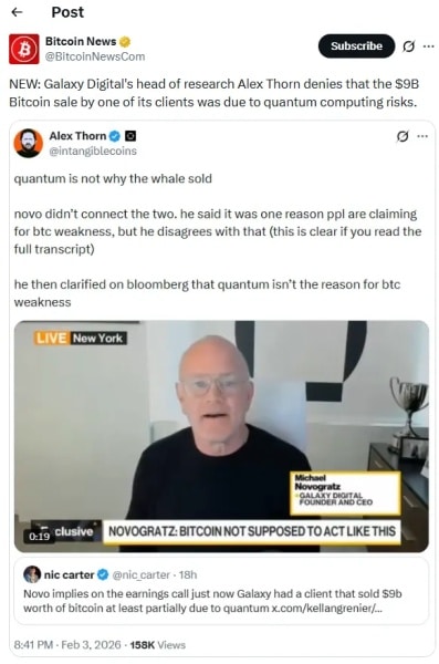 D'après un article de Zhu, le vendredi 6 février, l'indice Coinbase Premium a brièvement atteint environ 0,5 après la chute du Bitcoin aux alentours de 60 000 $, avant de retomber en territoire négatif. Bien que cela ne confirme pas un point bas pour le marché, cela suggère un ralentissement des ventes agressives et un retour progressif des acheteurs américains.