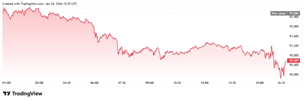 Selon les données de TradingView, le bitcoin, la principale cryptomonnaie, est passé sous la barre des 90 000 $ aujourd'hui, atteignant un plus bas à 89 800 $. Le BTC a perdu plus de 2 % sur la journée, après avoir culminé à environ 93 000 $ en séance.