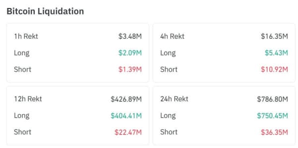 Selon CoinGlass, les traders ayant pris des positions longues sur le Bitcoin ont perdu plus de 750 millions de dollars lors de la forte chute des prix. Il s'agit de la plus forte perte enregistrée par ce groupe de traders depuis novembre dernier.
