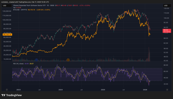 La faiblesse des marchés a coïncidé avec une ouverture en baisse pour les actions américaines, notamment dans le secteur des logiciels, déjà fortement touché. L'ETF iShares Expanded Tech-Software Sector (IGV) a chuté de 3 % et se situe désormais 30 % en dessous de son plus haut d'octobre. Les valeurs technologiques sont sous pression, les progrès de l'intelligence artificielle étant perçus comme une menace pour leurs modèles économiques. Les marchés influencent l'opinion publique, et l'opinion dominante est que le Bitcoin n'est qu'un logiciel ; par conséquent, si l'IA représente une menace pour le secteur, elle représente également une menace pour le Bitcoin.