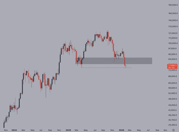 « Une consolidation sous le support des 74 000 $ augmentera le risque d’une nouvelle correction et pourrait ramener le marché des cryptomonnaies à la fourchette typique de 2024 », a déclaré Asia Color dans une analyse.