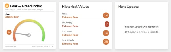 L'indice de peur et d'avidité reflète également cette déception, restant dans la zone de peur extrême. Avant le week-end, cet indicateur avait chuté à son plus bas niveau depuis l'effondrement de l'écosystème Terra (7 points), avant de remonter à 14 points.