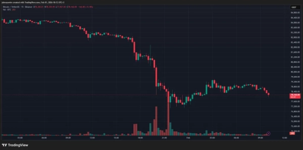 Le soir du 31 janvier, la principale cryptomonnaie a chuté sous la barre des 80 000 dollars. La pièce a perdu environ 7 % de sa valeur en 24 heures.