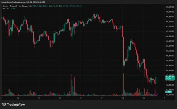На момент написання біткоїн торгується близько $63 473, втративши в ціні приблизно 5% за останню добу.
