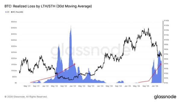 Паралельно зростає реалізований збиток довгострокових власників – добове значення зросло до $200 млн.
