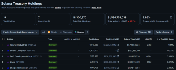 Публічні підприємства, які зберігають запаси в Solana, зіткнулися з нереалізованими втратами на суму понад $1,5 млрд. Про це говорять відомості CoinGecko.