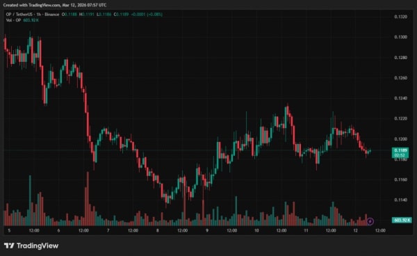 Протягом останнього місяця вартість нативного токена OP впала на 36,7%. На момент написання статті монета торгується приблизно за $0,11.