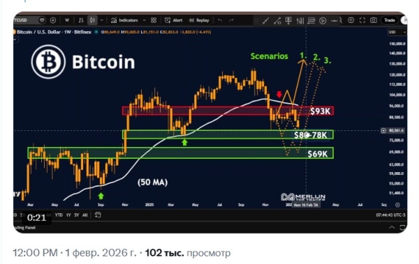 L'analyste Merlijn The Trader a identifié la fourchette actuelle comme la plus importante du cycle. La zone de support clé se situe entre 78 000 $ et 80 000 $. Si ce niveau cède, le pire scénario serait une chute à 69 000 $.