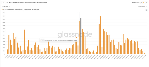 Розподіл реалізованої ціни виходів невитрачених транзакцій (URPD) виокремлює ключові кластери пропозиції. Дані Glassnode показують точне розташування проблемних зон. Найбільший найближчий кластер знаходиться на позначці $65636. Тут востаннє перейшли з рук в руки близько 524815 $BTC . Цей обсяг становить 2,62% від загальної пропозиції криптовалюти. Другий кластер знаходиться на рівні $64 373 і містить 0,68% пропозиції.