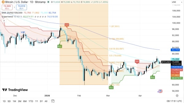 Прогноз ціни біткоїну: BTC нарощує тиск на рівні $75K, поки ринок чекає на прорив