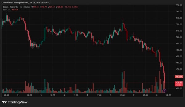 На тлі повідомлення ціна ZEC скоротилася більше ніж на 10% за останню добу. На момент публікації монета торгується біля $430 — суттєво нижче листопадового піку в $720.