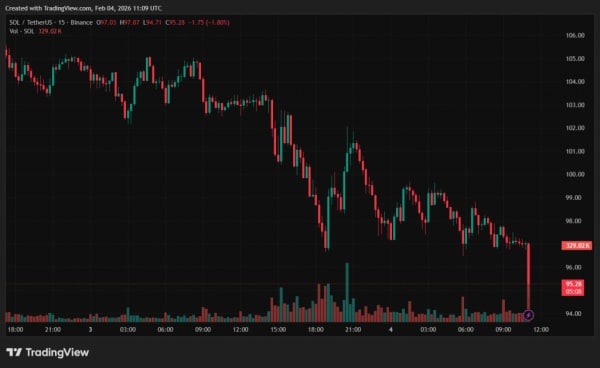 15-хвилинний графік SOL/USDT біржі Binance. Джерело: TradingView.