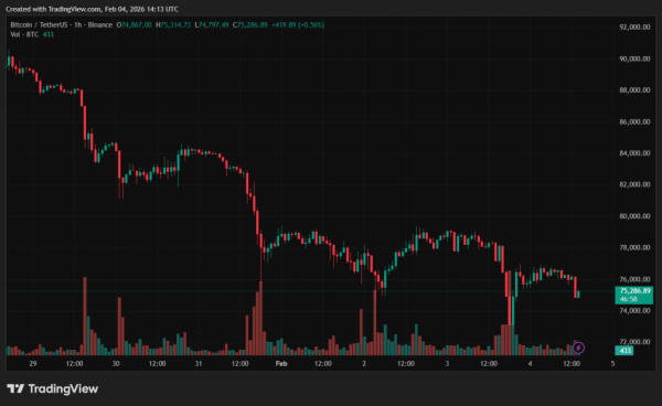 На момент написання матеріалу біткоїн торгується біля $75 300, частково відновившись після падіння до $73 000.