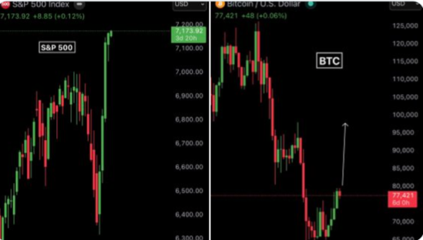 Поки що акції перебувають на історичних максимумах, а біткоїн — ні. Цей розрив або закриється, або покаже важливе питання, де криптовалюта зараз знаходиться в поточному ринковому циклі.