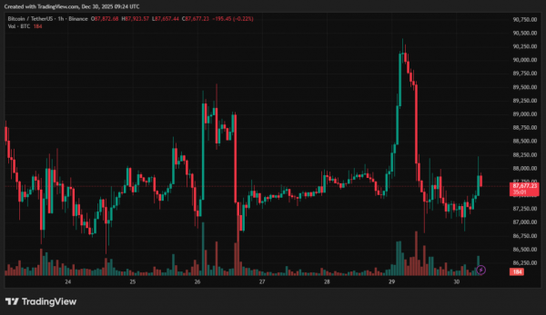 На момент написання вартість біткоїна складає ~$87 700. За останню добу вартість активу впала на 1,8%.