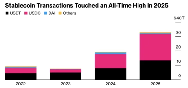 Загальний обсяг операцій зі «стабільними монетами» у 2025 році збільшився на 72% — до $33 трлн.