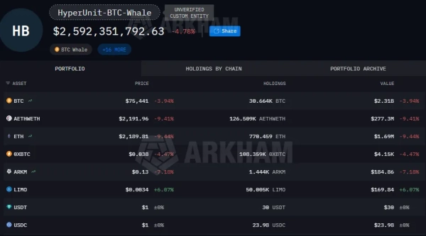 Ліквідація на Hyperliquid не розорила кита: за відомостями Arkham, на інших його гаманцях залишаються кошти на $2,5 млрд.